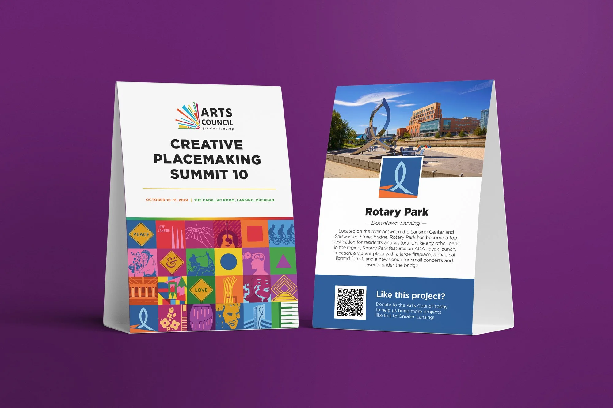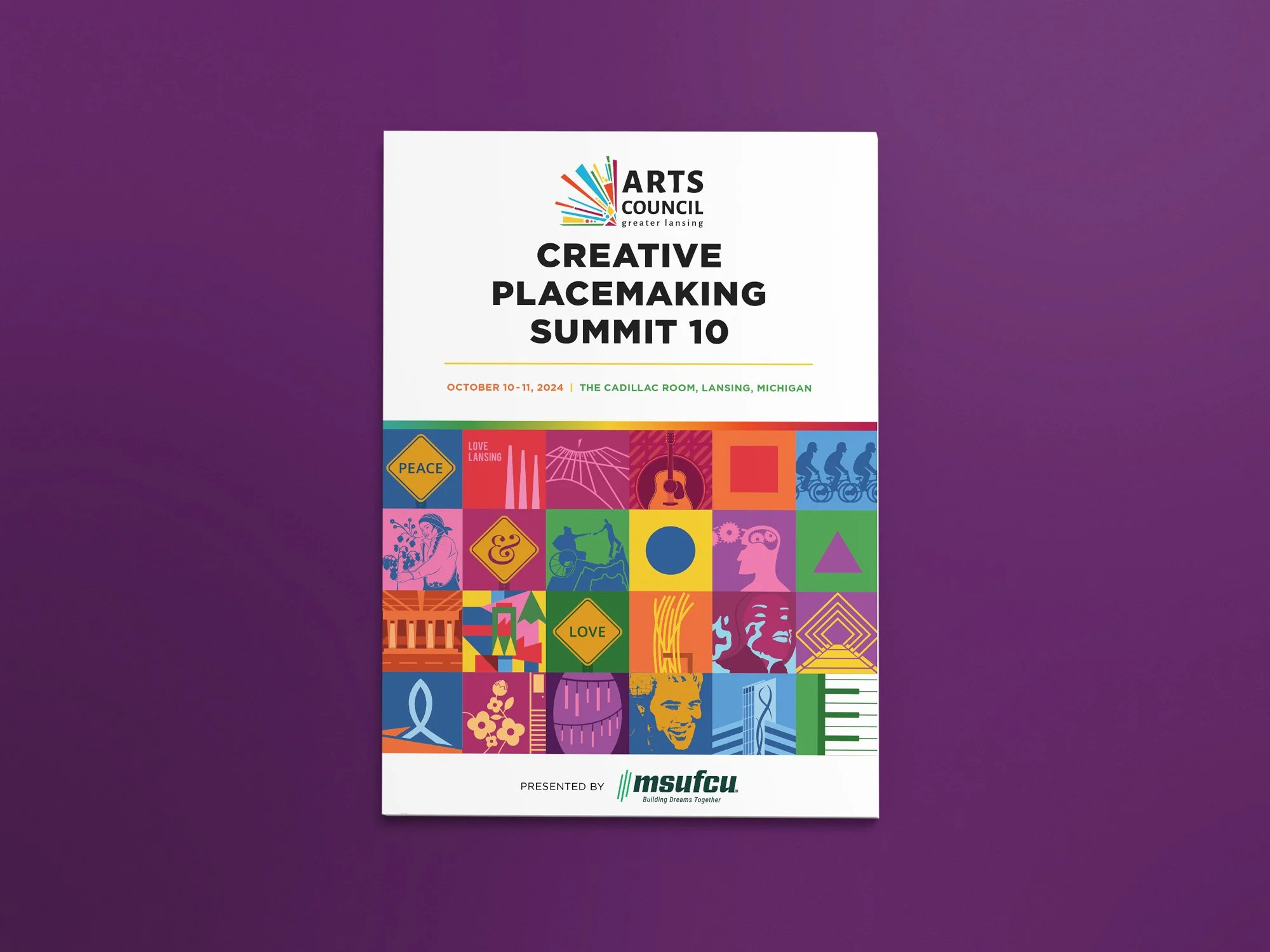 The Arts Council's Creative Placemaking Summit is an annual conference that brings residents, creatives, and public officials together to learn from each other and converse about how to make Lansing a better place to live through art and other creative endeavors. To celebrate a decade of creative placemaking in Lansing, I created a collage showcasing each project sponsored by the Arts Council to show how each one has helped form a colorful and unique identity for the city.